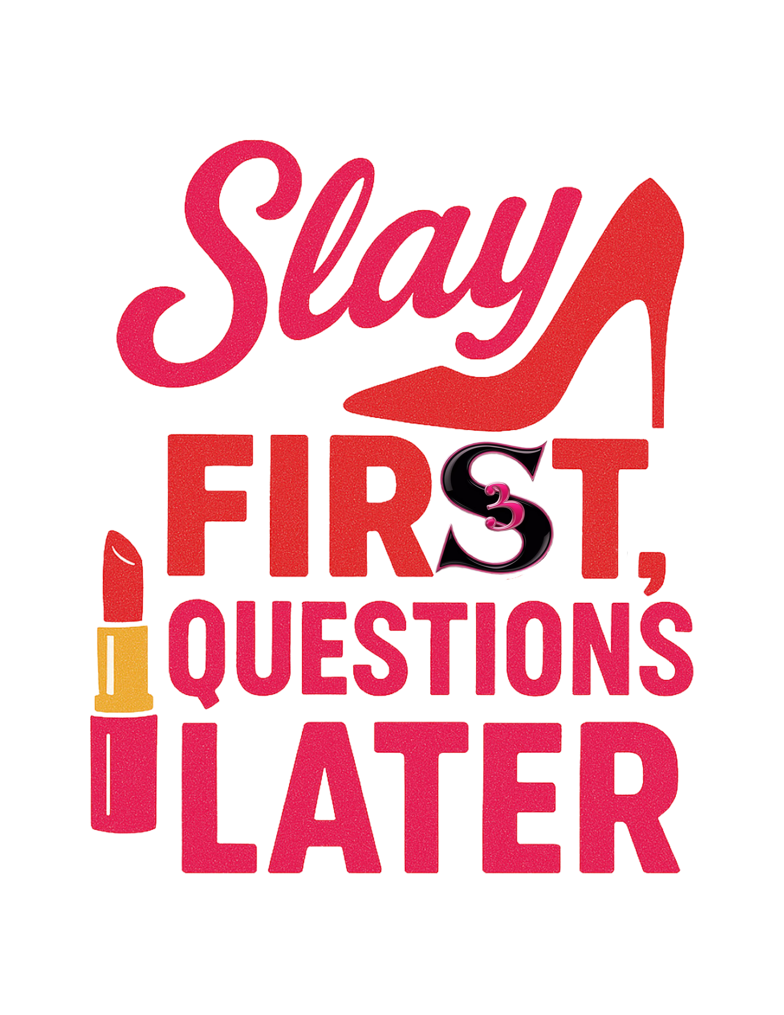 Command the room without saying a word. The “Slay First, Questions Later” tee is bold, fearless, and unapologetically stylish—just like you. Featuring vibrant lipstick and stiletto graphics, this shirt celebrates feminine power with a fashionable punch.